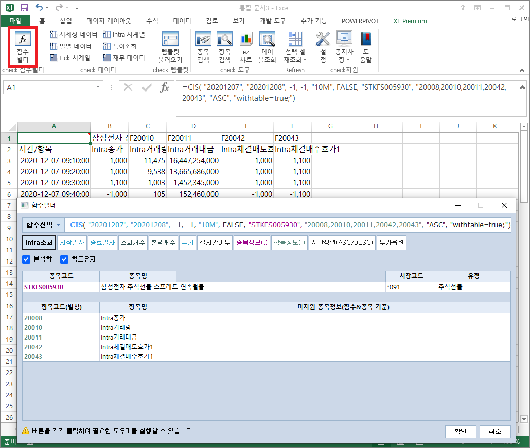 정말 오랜만에 쓰는 글은 나의 생존 신고 겸, 아이패드를 갖기 위한 몸부림이다. 코스콤의 Check Expert+ 단말기와 엑셀 프리미엄이 데이터는 엄청나게 많다. 종목의 실시간 데이터부터 과거 일별 데이터, 거기에 Intra 데이터까지. Intra 데이터는 쉽게 말해 과거의 기간 데이터이다. Intra 10분 데이터면 10분 간격으로 원하는 데이터 항목의 통계치 (시/고/저/종가, 체결량, 거래대금 등)를 쭉 볼 수 있는 것이다. 이 Intra 데이터가 개인적인 생각으로는 엑셀 프리미엄이 주는 가치 중 가장 큰 비중을 차지하고 있지 않을까 생각해본다. 기본 정보나 실시간 시세와 같은 것들은 굳이 엑셀 프리미엄을 사지 않더라도 DDE나 RTD를 통해서 어느 정도 커버가 되니깐. 무튼 오늘은 엑셀 프리미엄..