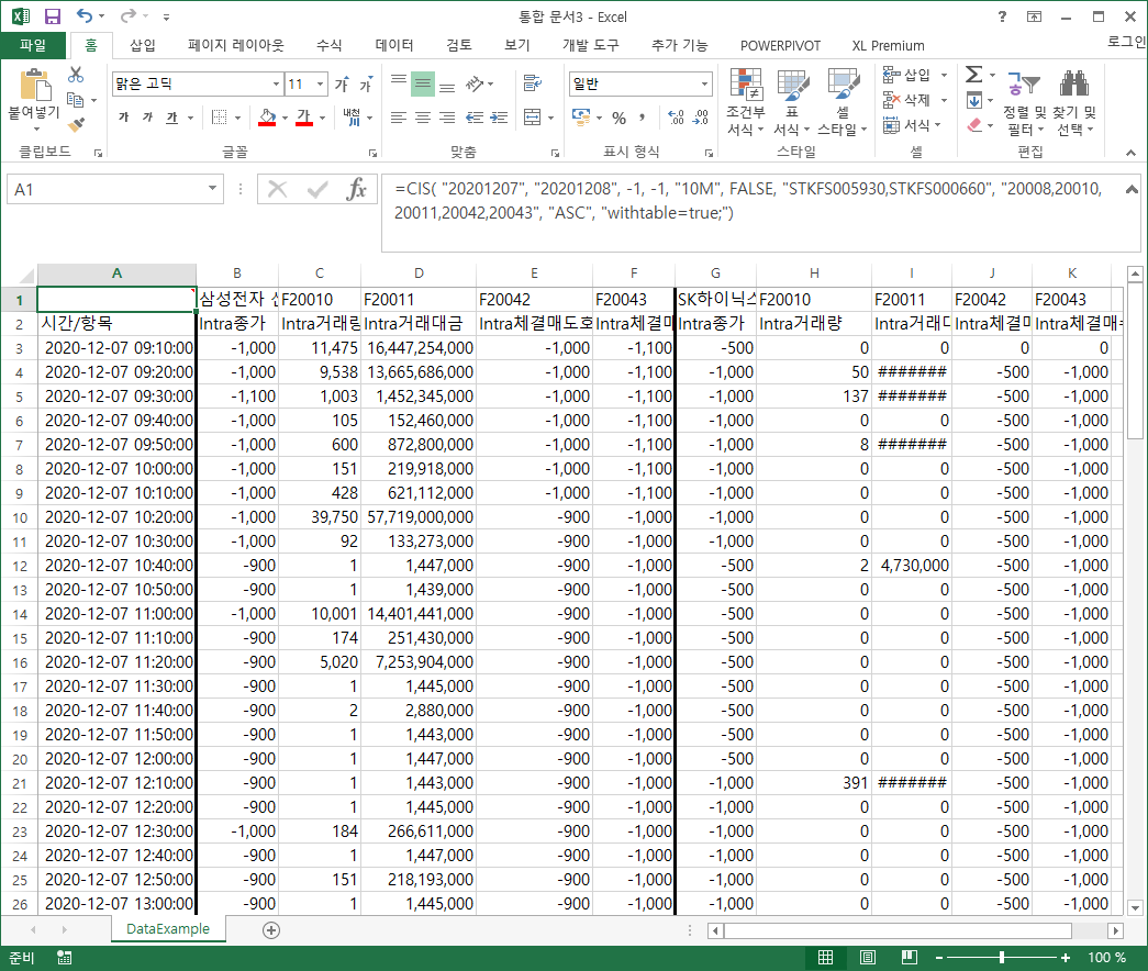 무튼 오늘은 엑셀 프리미엄을 사용하면서, 특히 너무 많은 종목의 Intra 데이터를 조회하고 저장할 때 필요한 노가다를 VBA랑 같이 엮어서 원터치로 해결한 방법을 소개할까 한다. 그러면서 엑셀 프리미엄에 대한 소개도 하고 불만도 얘기하고.
